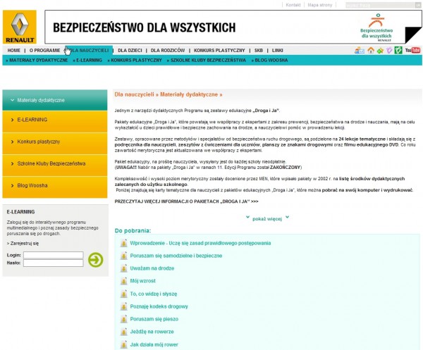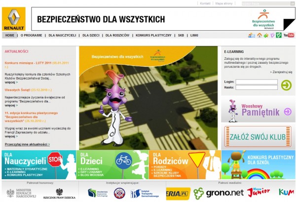 w ramach Programu), zawierający formularz zgłoszeniowy, regulamin oraz obszerne archiwum wszystkich edycji począwszy od 2000 roku. Powstał również dział dla Szkolnych Klubów Bezpieczeństwa, nowego elementu programu „Bezpieczeństwo dla wszystkich” Renault, za pośrednictwem którego szkoły mogą zakładać kluby prowadzące aktywne działania na rzecz poprawy bezpieczeństwa ruchu drogowego
