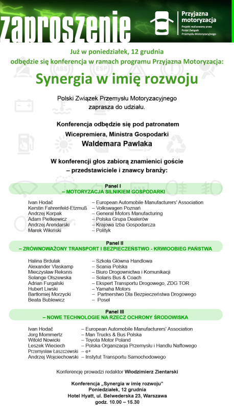 W imieniu naszego Parnera PZPM zapraszamy na konferencję, której patronuje Wicepremier, Minister Gospodarki Waldemar Pawlak. Konferencja odbędzie się w poniedziałek, 12 grudnia w hotelu Hyatt od godziny 10.00.