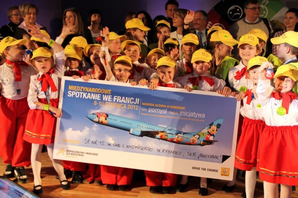 Decyzją konkursowego jury złożonego z przedstawicieli instytucji wspierających program (Ministerstwa Edukacji Narodowej, Krajowej Rady Bezpieczeństwa Ruchu Drogowego, Biura Ruchu Drogowego Komendy Głównej Policji, Instytutu Transportu Samochodowego oraz Parlamentarnego Zespołu ds. Bezpieczeństwa Ruchu Drogowego), patronów medialnych oraz Renault Polska, nagrodę główną przyznano członkom Szkolnego Klubu Bezpieczeństwa „Pancernik” ze Szkoły Podstawowej nr 12 im. Kardynała Stefana Wyszyńskiego w Rybniku. Zwycięzcy konkursu będą reprezentować Polskę na międzynarodowym finale konkursu we Francji (8-10 czerwca 2012), gdzie zostanie wręczona nagroda specjalna za najlepszy projekt na świecie, wybrany spośród wszystkich państw uczestniczących w konkursie „Twój pomysł, Twoja inicjatywa”. Zwieńczeniem finału będzie wycieczka do Parku EuroDisneyland pod Paryżem.