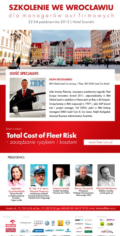 W tym roku, szkolenie Fleet Management Training odbędzie się w dniach od 22 do 24 października 2012r. w Hotelu SCANDIC we Wrocławiu, przy ul. Piłsudskiego 49/57.