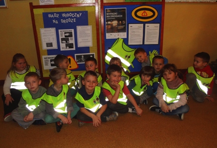 - „ … zorganizowaliśmy Dzień Kamizelki Odblaskowej, w którym uczniowie i nauczyciele byli ubrani w kamizelki odblaskowe”,