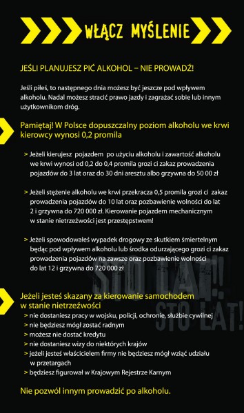 Partnerzy: Wydział Ruchu Drogowego Komendy Głównej Policji, Krajowa Rada Bezpieczeństwa Ruchu Drogowego, Związek Pracodawców Polski Przemysł Spirytusowy, Partnerstwo dla Bezpieczeństwa Drogowego, Urząd Miasta Olsztyn, Wojewódzka Komenda Policji w Olsztynie, WORD Olsztyn, Uniwersytet Warmińsko - Mazurski, Michelin, Fundacja Kierowca Bezpieczny