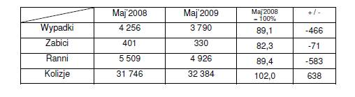 Z wstępnych danych opublikowanych przez Policję wynika, że w maju 2009 roku doszło do: