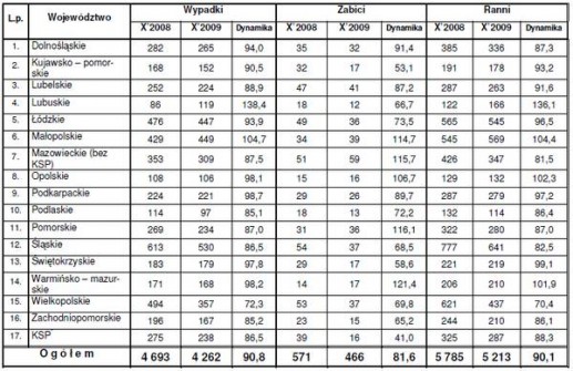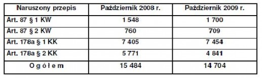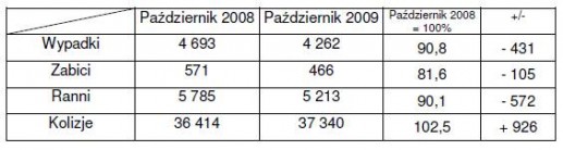 Poniższa tabela obrazuje porównanie tych danych ze stanem bezpieczeństwa drogowego w październiku 2008 roku: