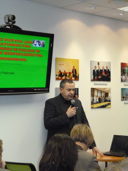 Po prezentacjach miała miejsce ciekawa dyskusja. Zaproszeni goście zgłosili kilka, bardzo konkretnych propozycji do Narodowego Programu. Szczególnie wyraźnie akcentowano konieczność, jak najszybszego wprowadzenia przepisów dotyczących młodych kierowców, które obecnie zostały odłożone na trzy lata. Zwrócono uwagę również na dysproporcję wynikającą z bardzo wysokich wymagań technicznych stawianych nowym samochodom, a nieskutecznym system badań okresowych dla starych samochodów. Osoby szczególnie zaangażowane w tworzenie programów profilaktycznych i kampanii skierowanych do dzieci, podkreślały, że potrzebna jest odgórna, kompleksowa kontrola MEN-u nad realizowaniem przez szkoły obowiązku edukacji z zakresu brd.