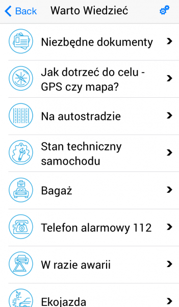 40 krajów europejskich – od popularnej Chorwacji, Francji, czy Włoch po tak egzotyczne miejsca jak Islandia, Albania i Macedonia. Jest dostępna dla iPhone'ów (pobierz), a także smartfonów z systemem Google Android (pobierz). Oprócz podstawowych informacji dotyczących przepisów drogowych, zawiera szereg ciekawostek i zwyczajów oraz wiadomości niezbędnych, aby dobrze przygotować się do podróży w danym regionie.